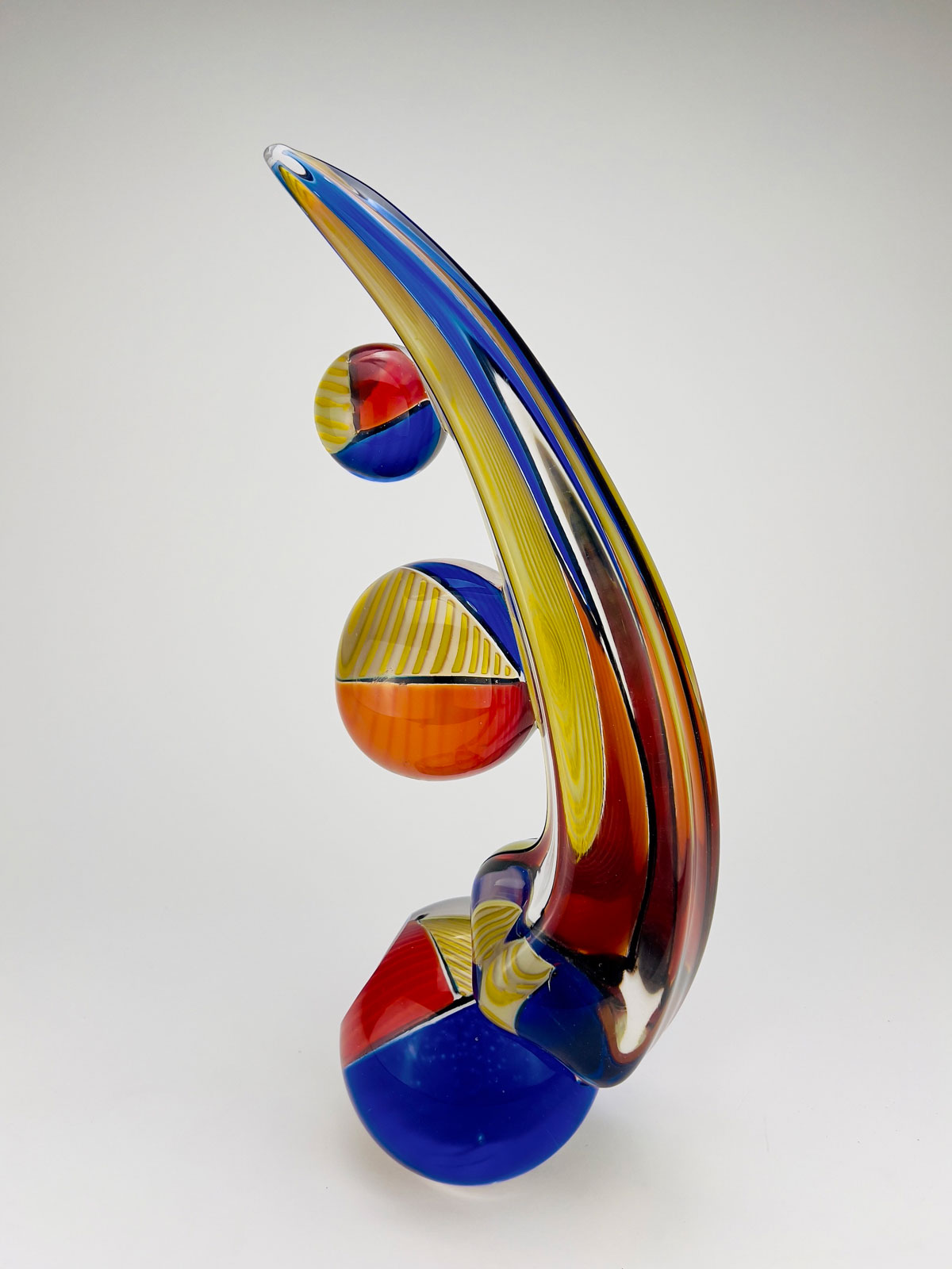 Richard Royal is recognized internationally as one of the most skilled and talented glassblowers in the studio glass movement. Having spent his early years as a ceramicist, he began working as a glass sculptor in 1978 at the Pilchuck Glass School. The birth of this new and exciting artistic movement appealed to the young artist, and Royal worked his way through the ranks to become one of Dale Chihuly’s main gaffers. His work with Chihuly lasted for many years and in the 1980’s led to Richard Royal’s emergence as an independent force in the art market.