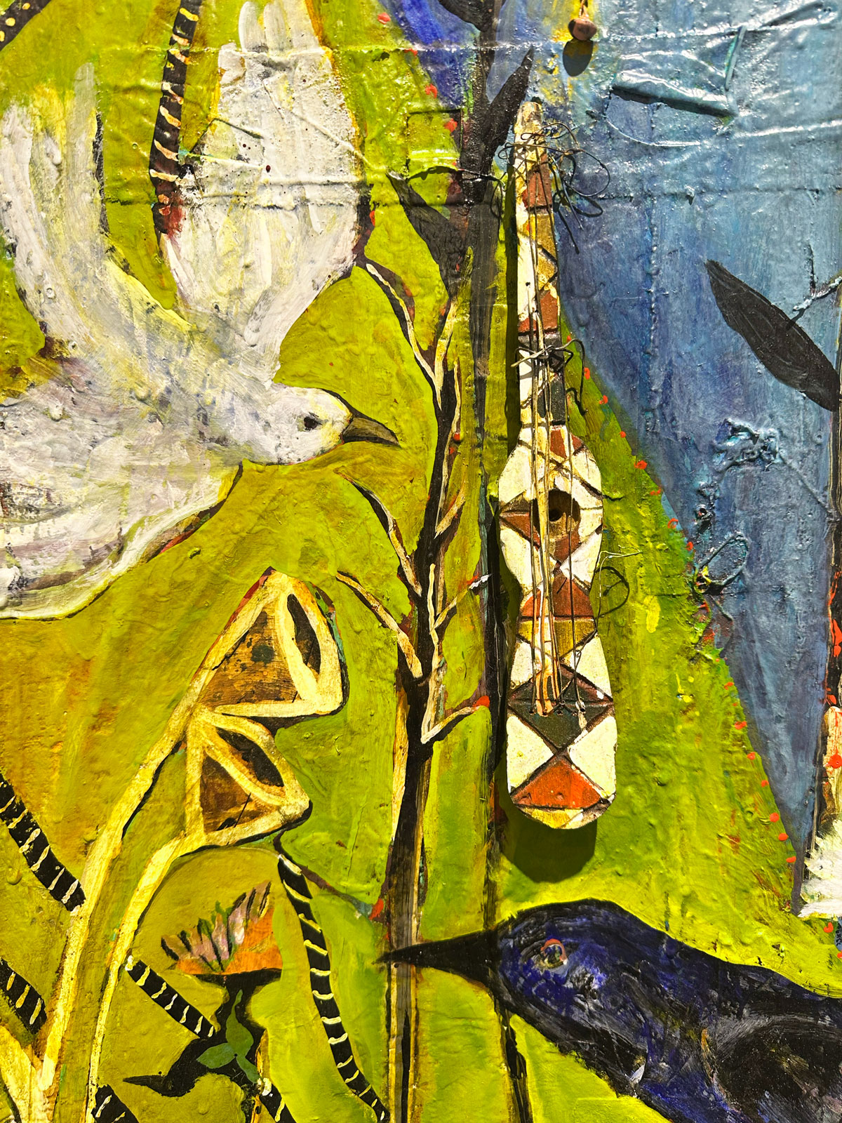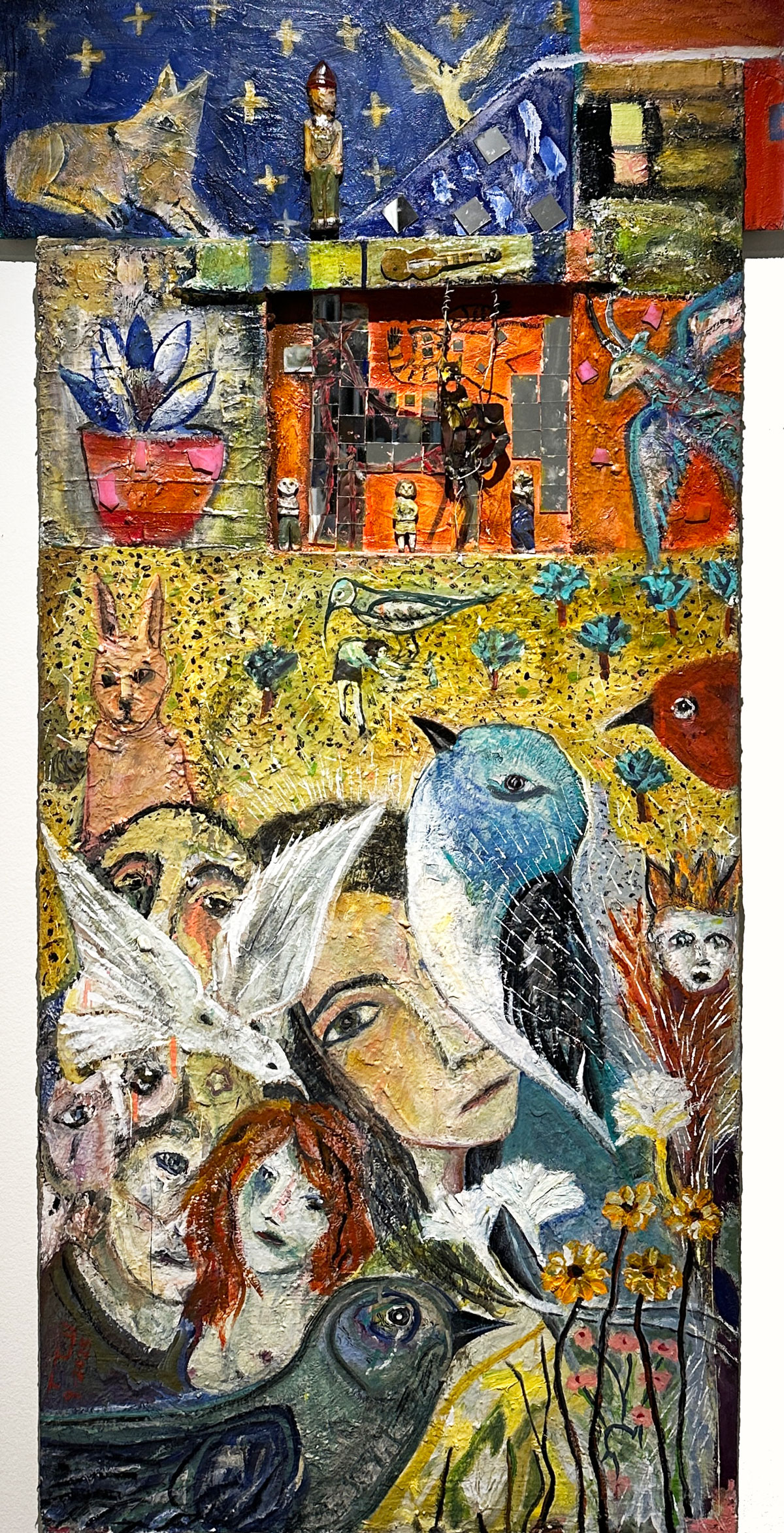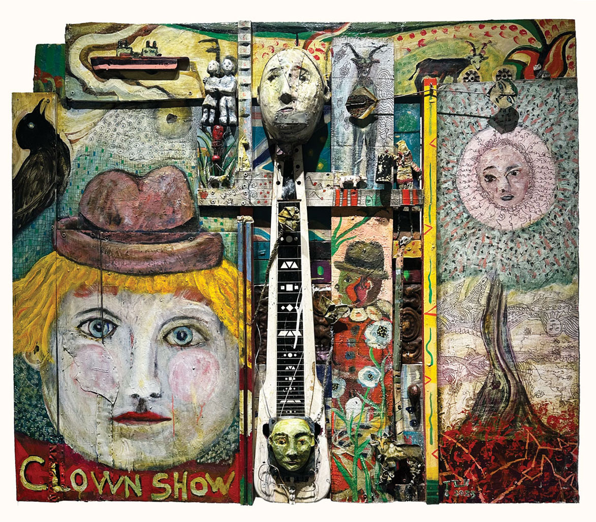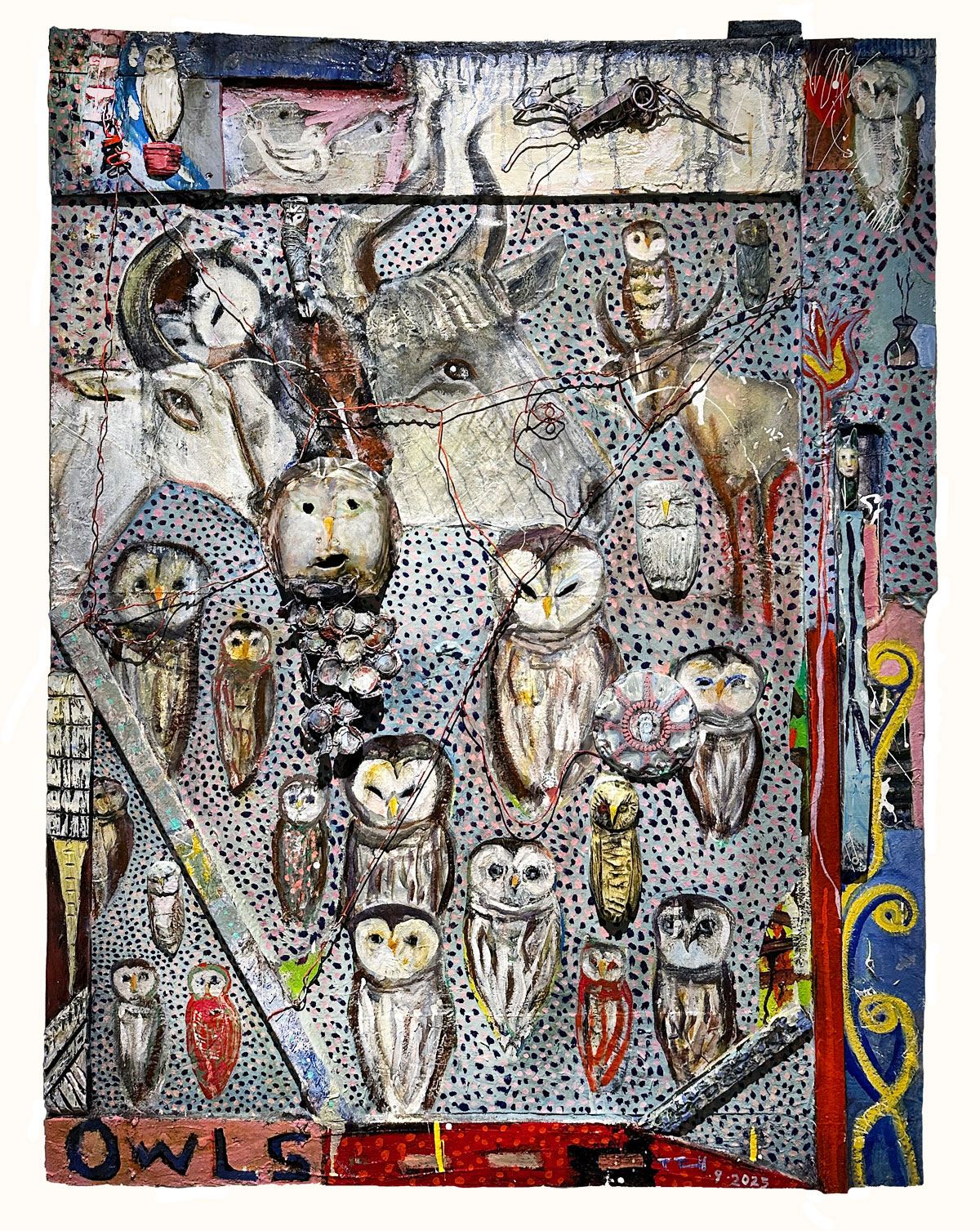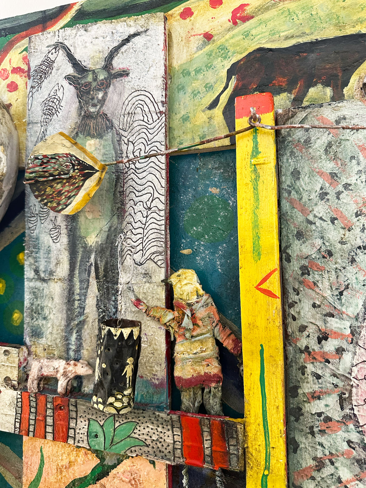 Oil, enamel & mixed media assemblage on panel, 41.5 x 49.5 in, $17,500.00