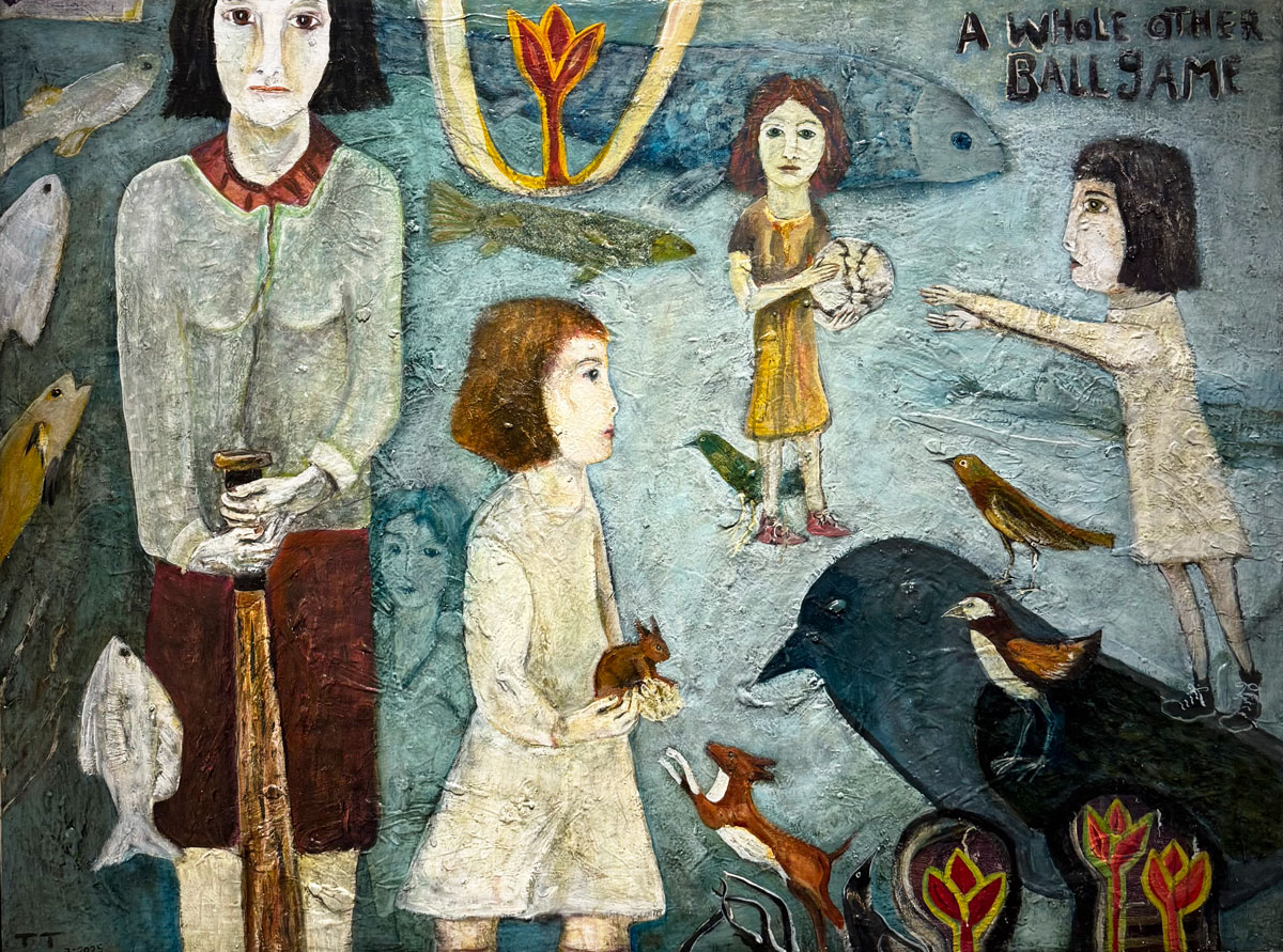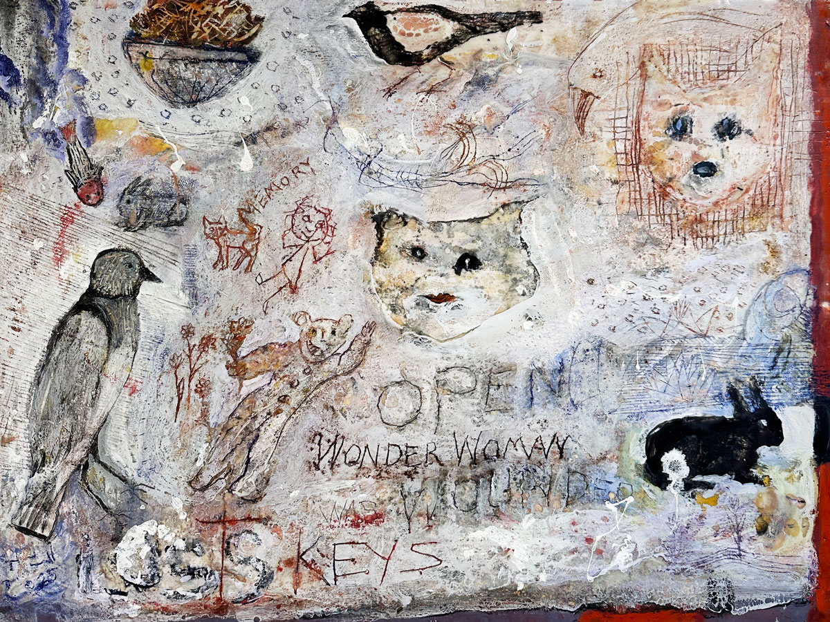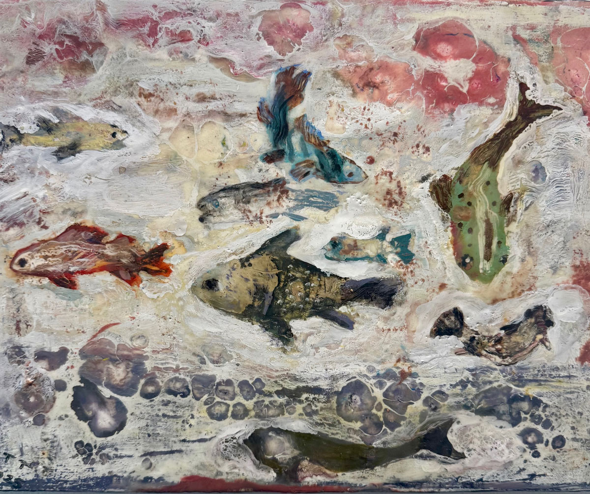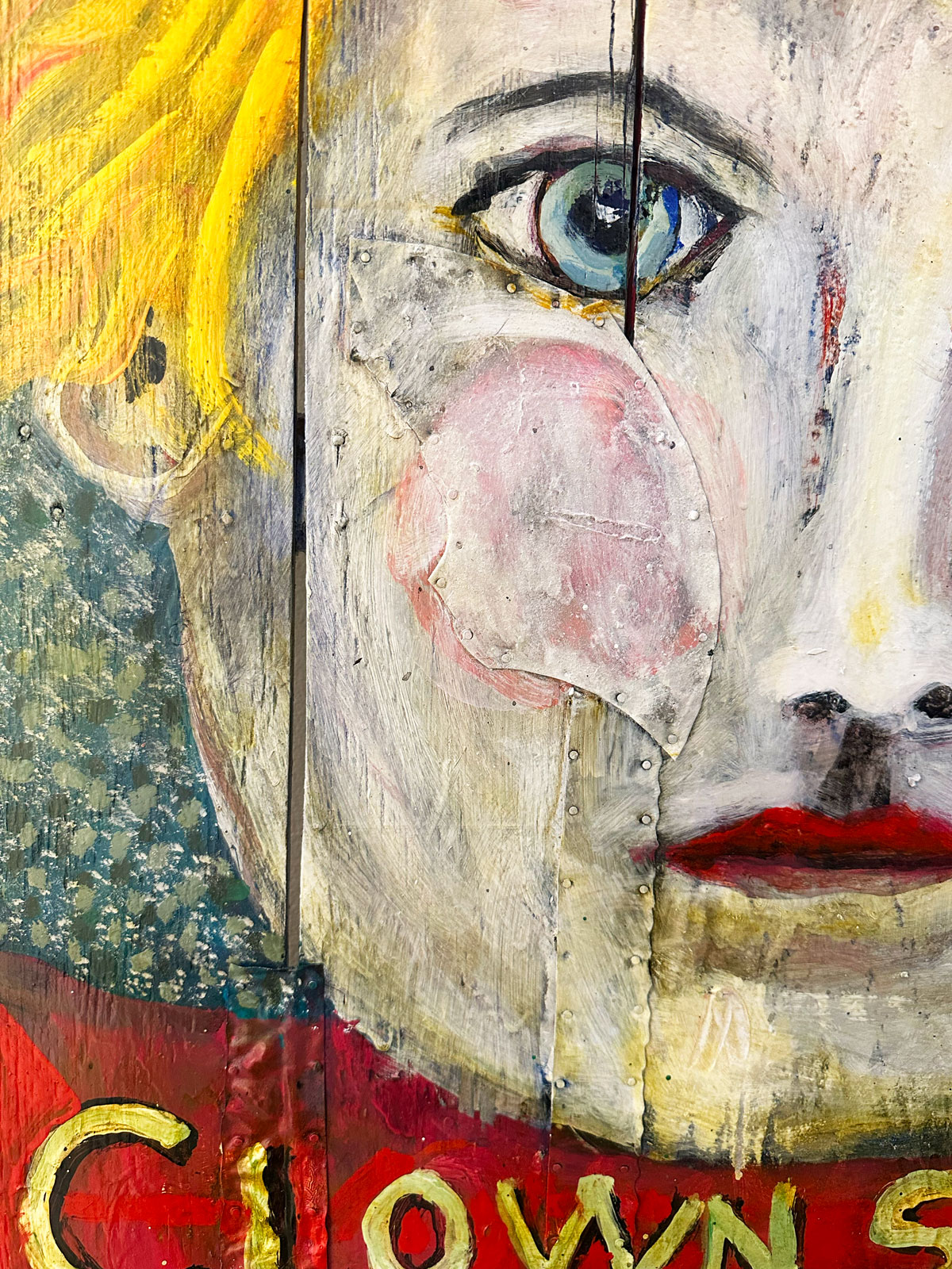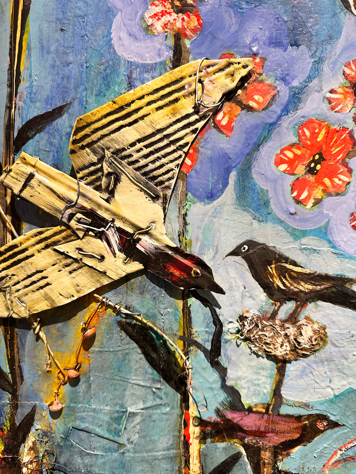 Oil, enamel & mixed media assemblage on panel, 41.5 x 49.5 in, $17,500.00