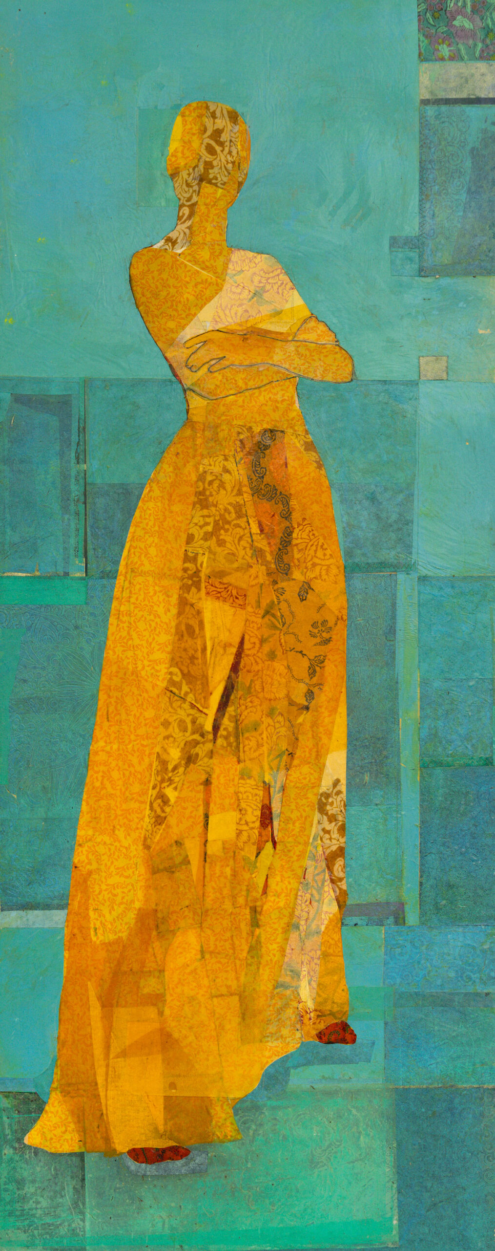 Encaustic collage on panel, 48 x 24 in, SOLD